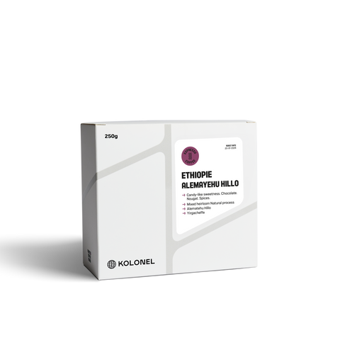 This coffee comes from Alemayehu Hillo, a dedicated farmer in the Yirgacheffe region. Each year he produces around 12 metric tons of coffee of which 9.6 tons prepared as specialty coffee for export.