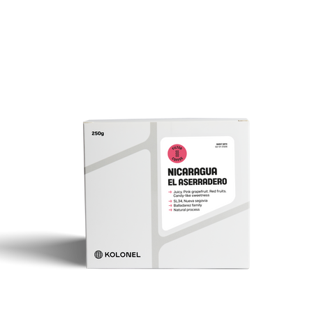 This specific 'Natural' nano-lot comes from the plot 'El Aserradero'. The coffee cherries were carefully dried for 31 days on African (raised) beds inside a greenhouse.
